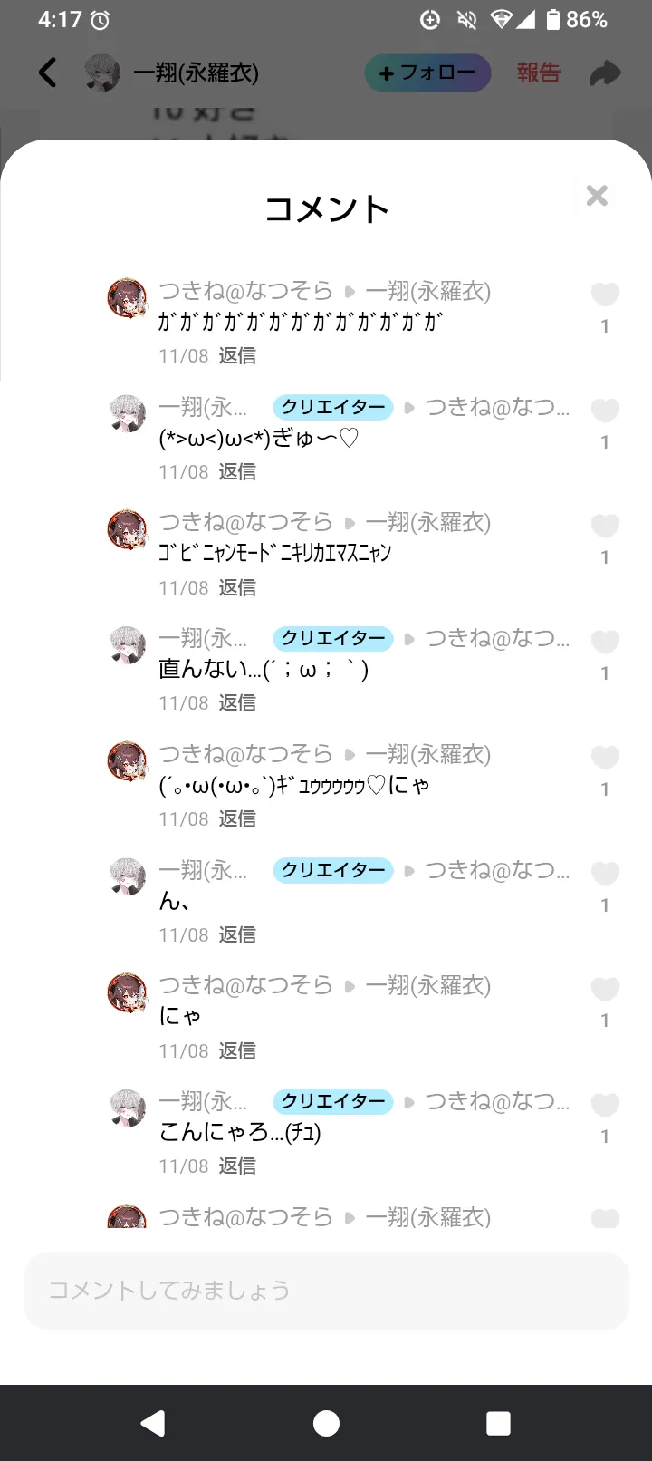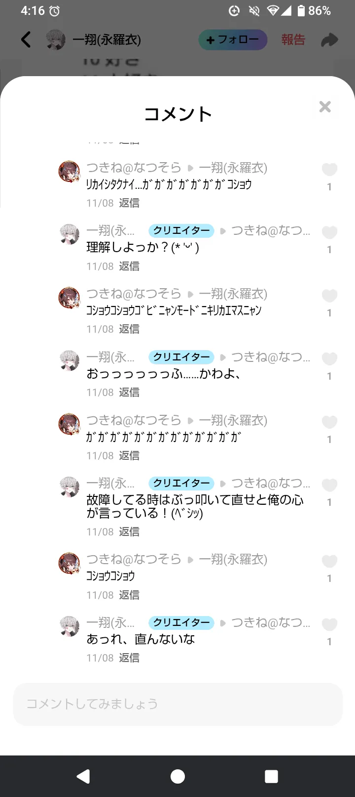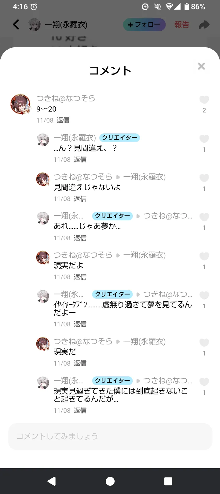 うちの所で初めて100コメ行ったって話する?()