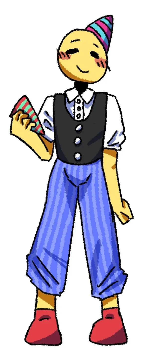 私のOCです名前はクラッカーくん世界中の色んな人の記念日や誕生日を祝っててどんな人にでも祝えるように色んな言語を使える男にも女にもなれる🥳←この絵文字を元にして作ってて口のやつとクラッカーを常備してるって設定