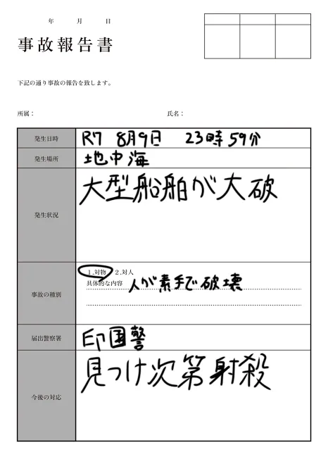 地中海で事故あったはずなのにインドの警察署に提出してるんだよね