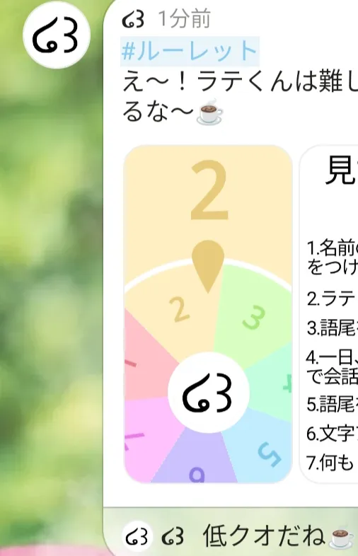 このルーレットのやつ作ったの私だしもうラテくんやんなくていいかな