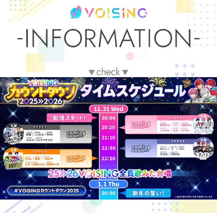 VOISING年越しのタイムテーブル一部公開されたぁ