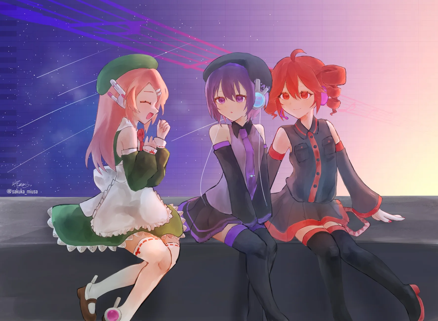 (左から桃音モモ、唄音ウタ(デフォ子)、重音テト)