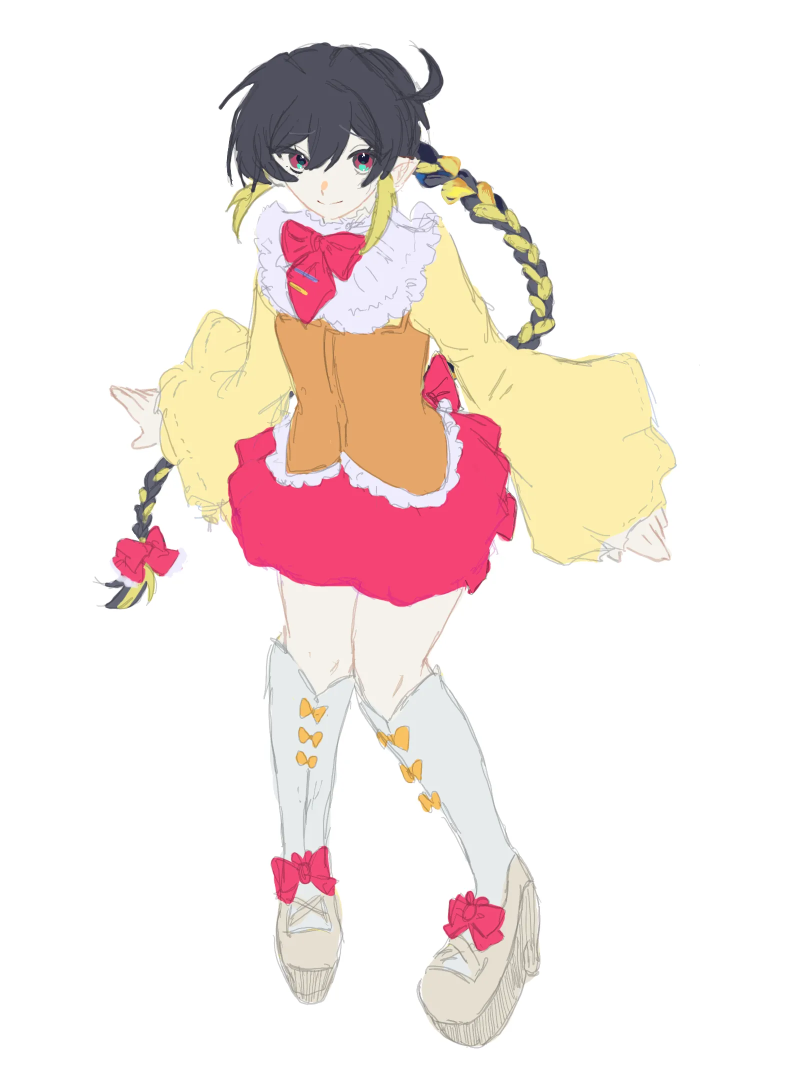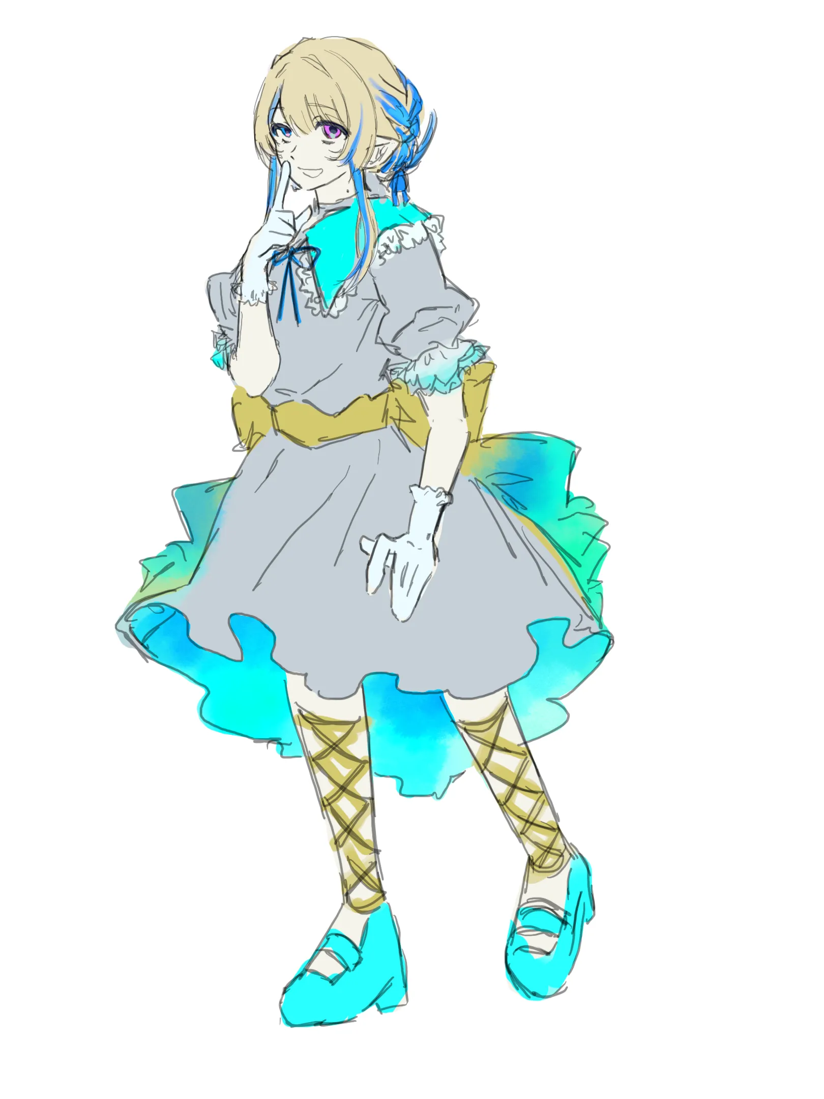 ・髪のメッシュず合わせたリボンを腰に倧きく巻く