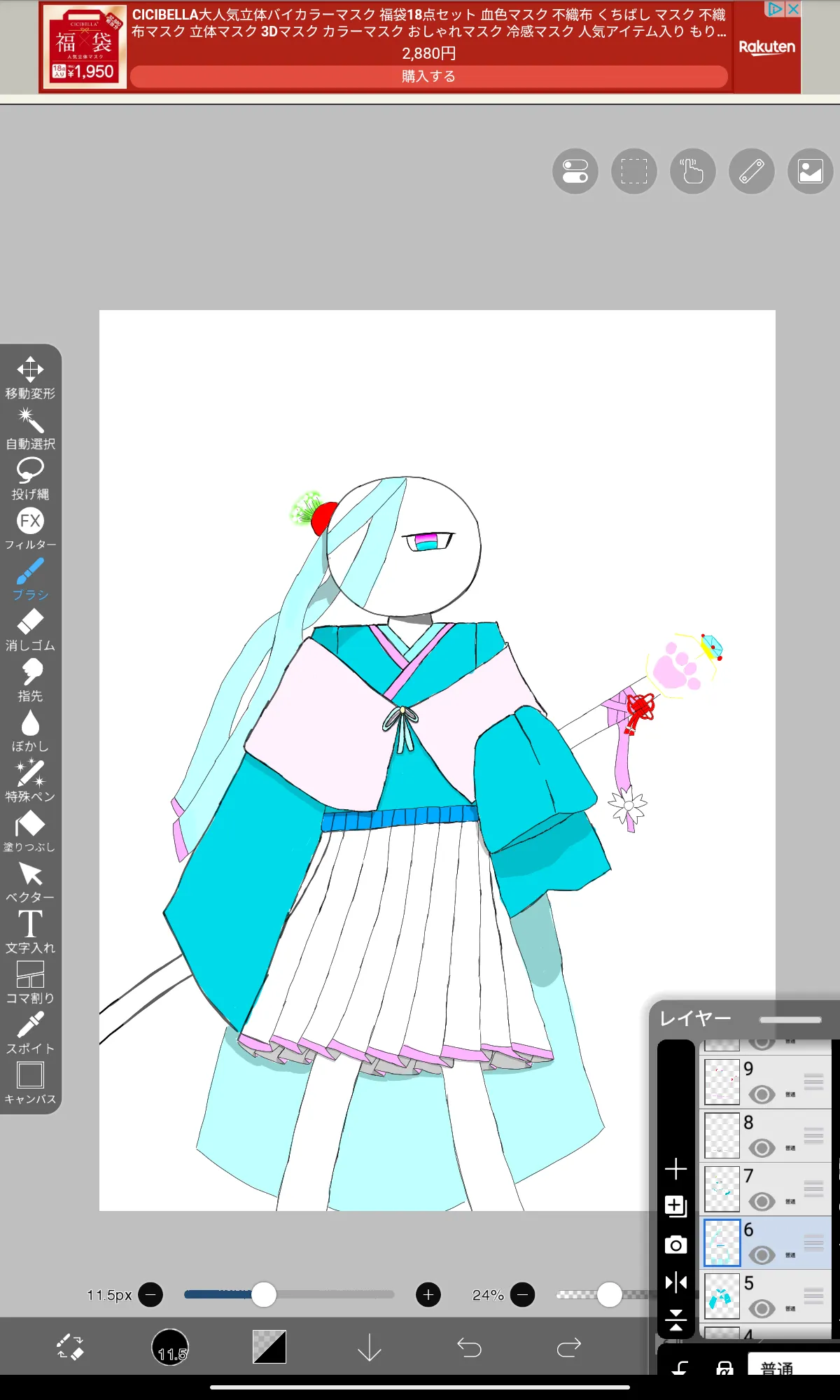ふくちゃへの代理の色塗り後