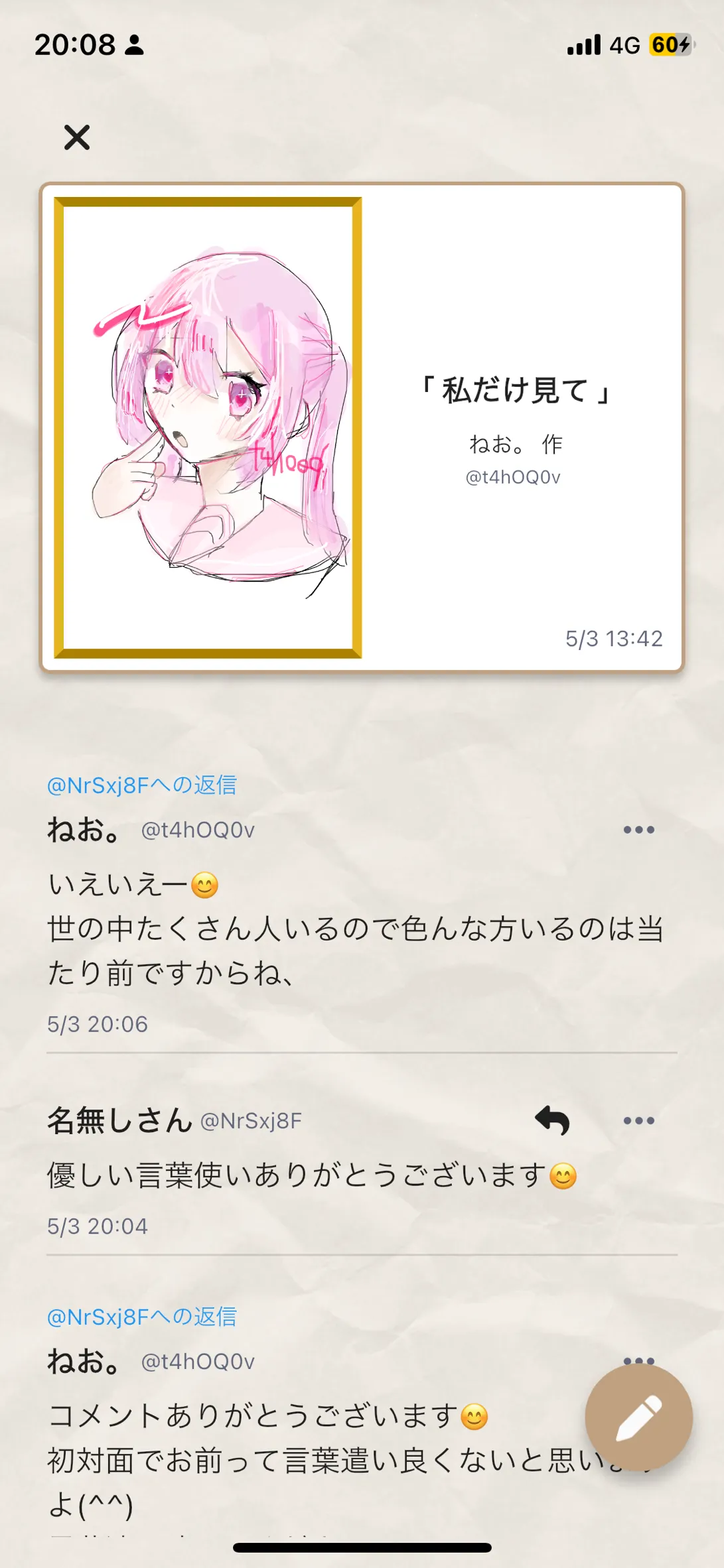てか、たまに目がめちゃくちゃでかく描く人いるけど、ねおちゃんの絵は、目がデカ過ぎないっていうか、自然な感じがするんだよねඉ́ …