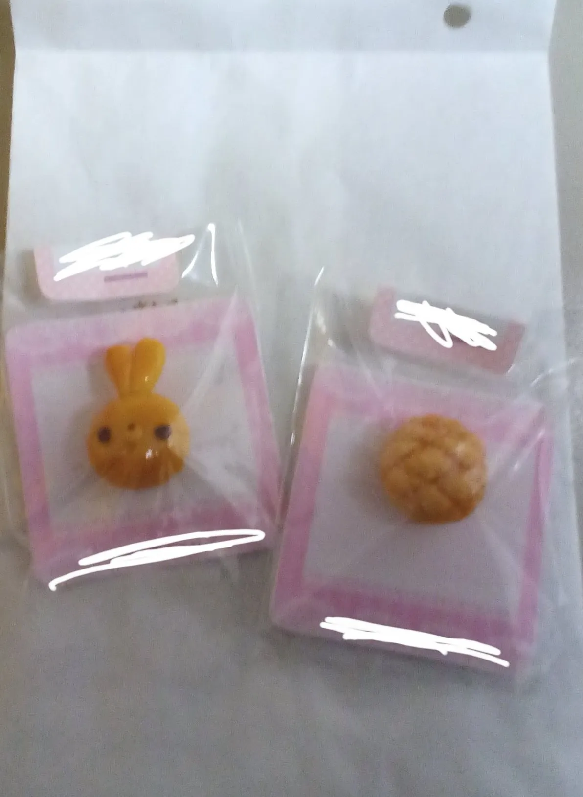 粘土でつくってるらしい…色めっちゃパンっぽいしメロンパンの砂糖?がかかってるのリアルすぎイ😋