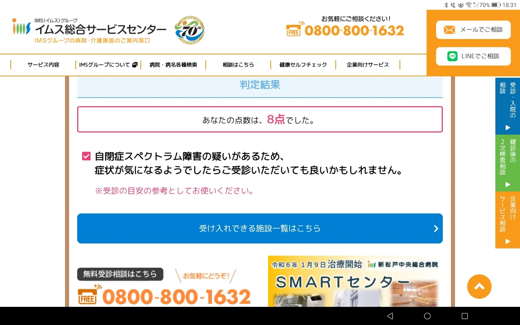 ヘルスケアのうつ病診断やったら中だった