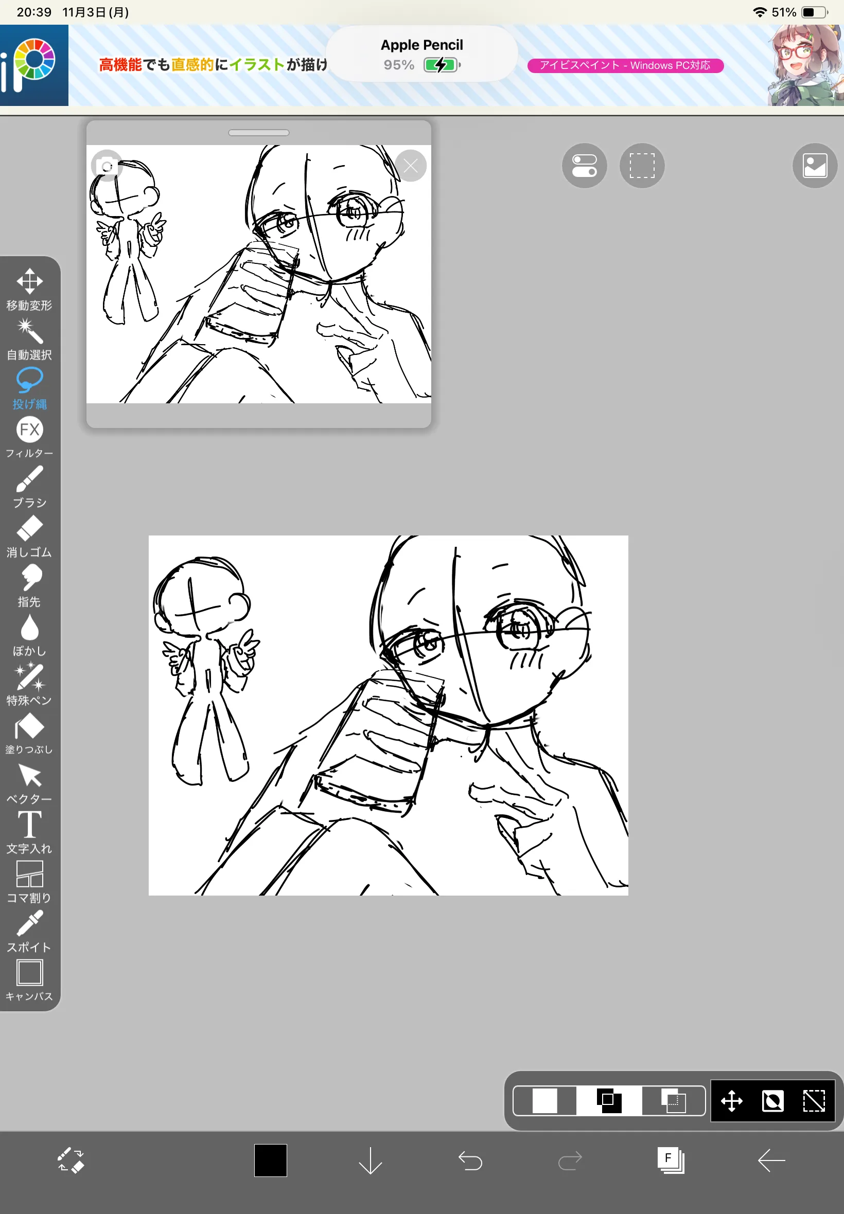 第2のラフがあまりにも綺麗にやりすぎて線画にしたくなる。線太いけど