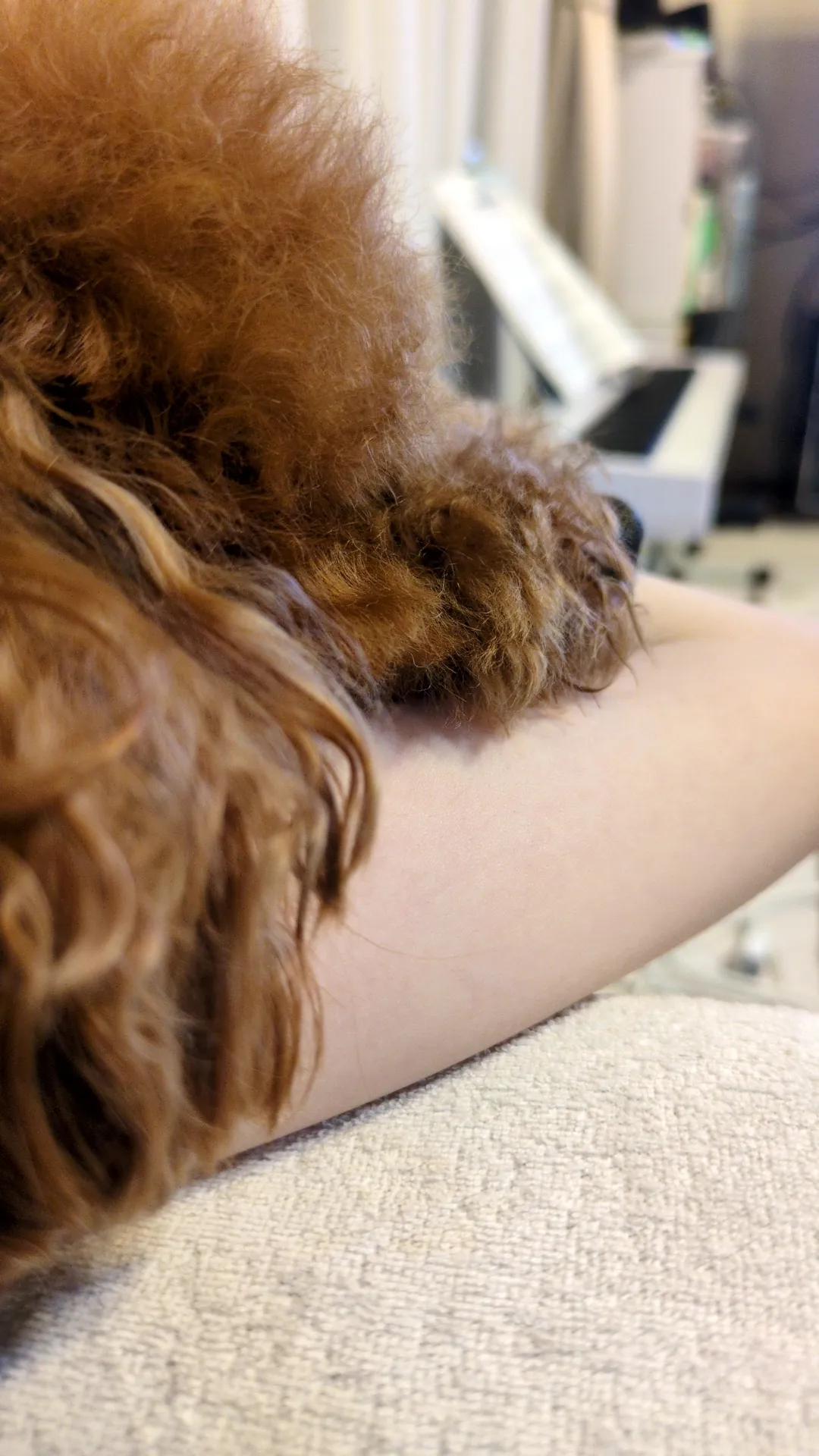 あのーすみません…そこで寝られると俺が髪乾かせないですぅ…