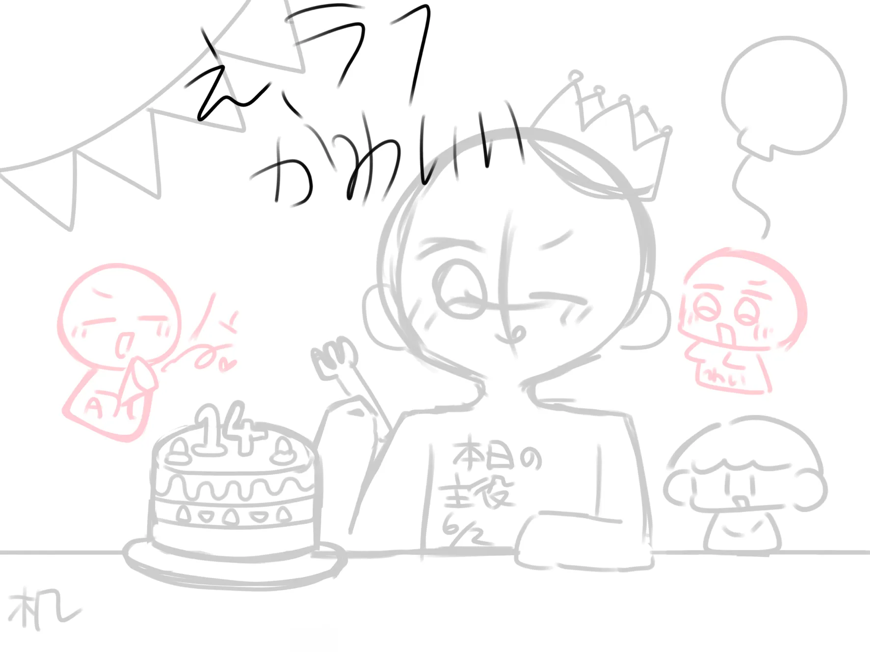 終わる気がしません締切は6月2日、推し(リアル)の誕生日全力でやりますあとこのラフの目かわいい