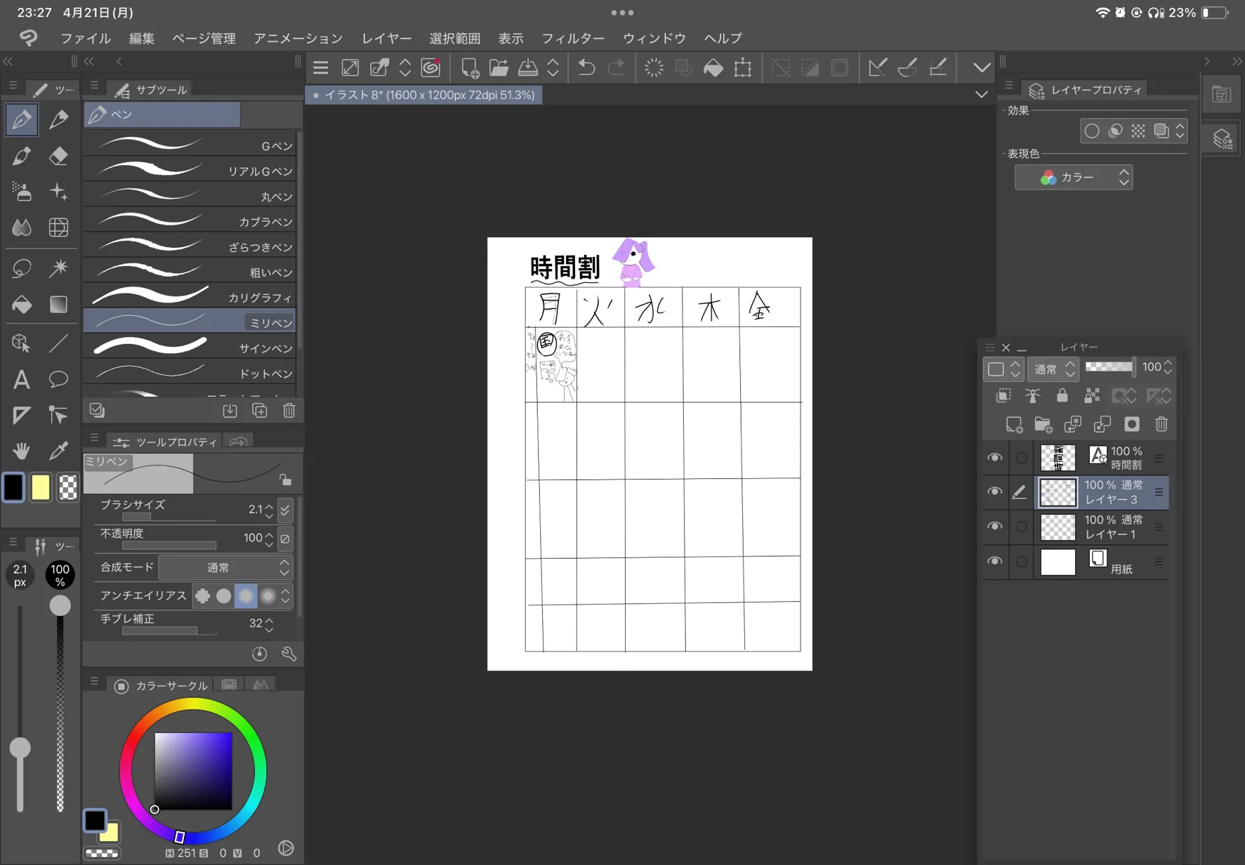 時間割表違うわ