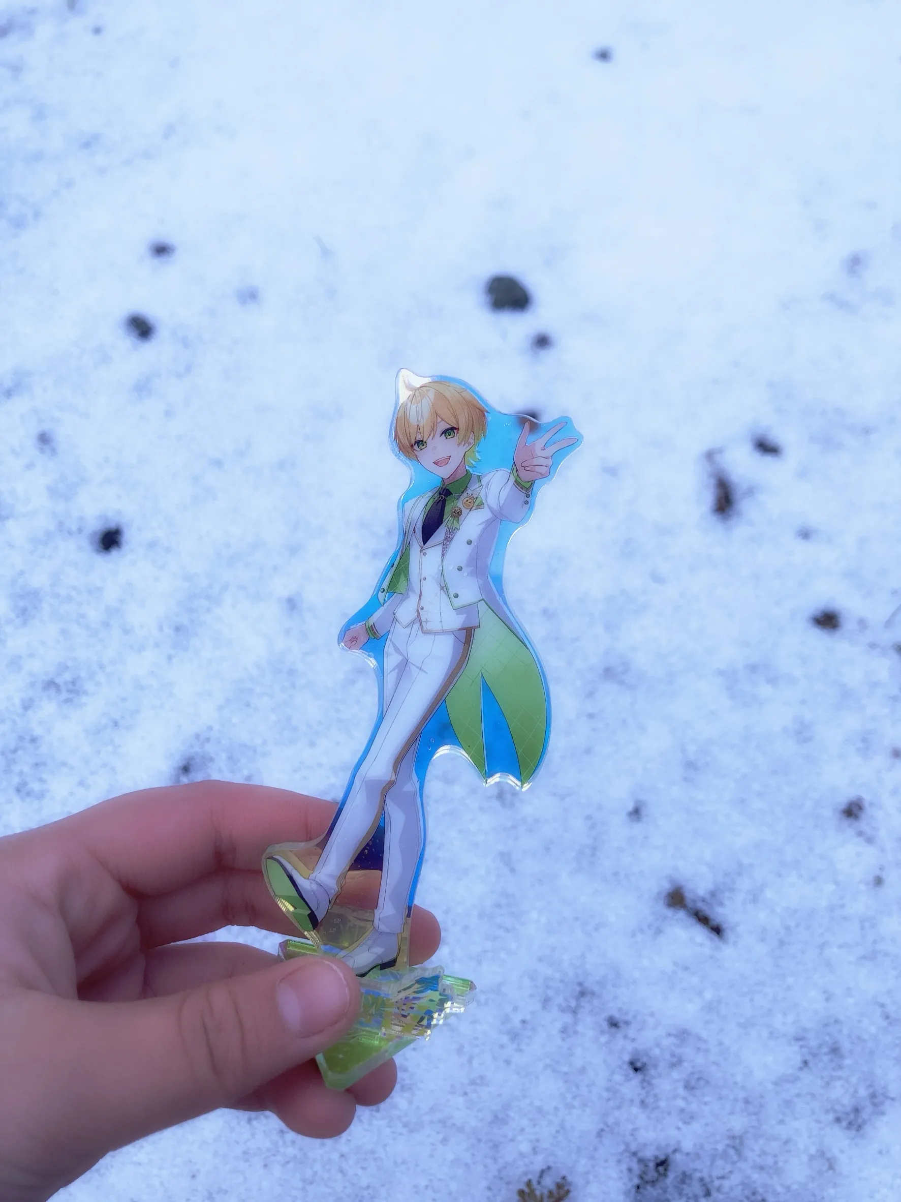 雪降ってたからグッズと撮った!!