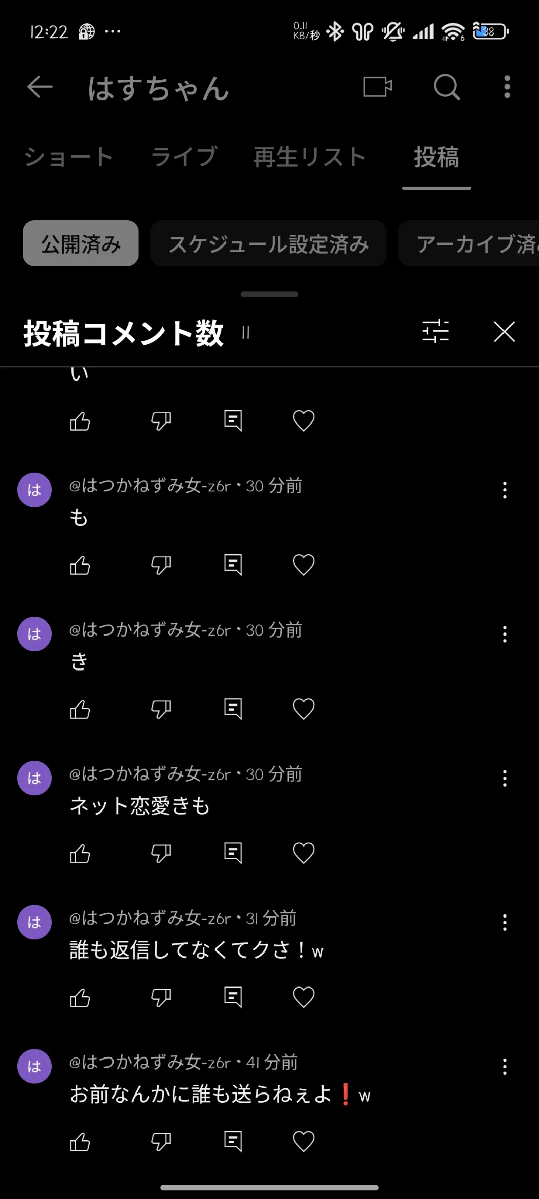 なんかはすちゃんのコメント欄開けん