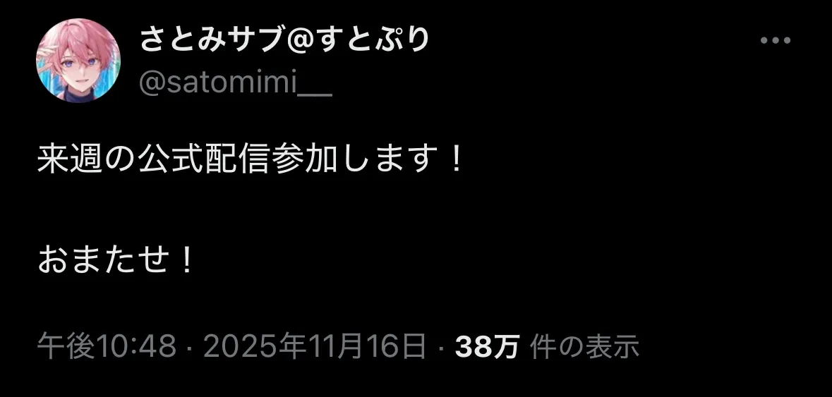 さとみくん復帰🥲🥲やばい来週の公式配信楽しみすぎる