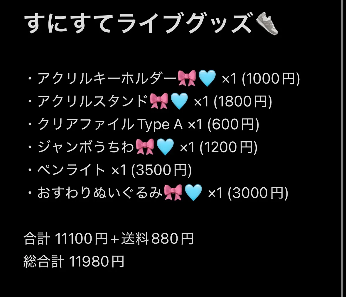 すにすてのライブグッズ買うもの決まったー!!お金無さすぎて今回ランダム買えない🥺