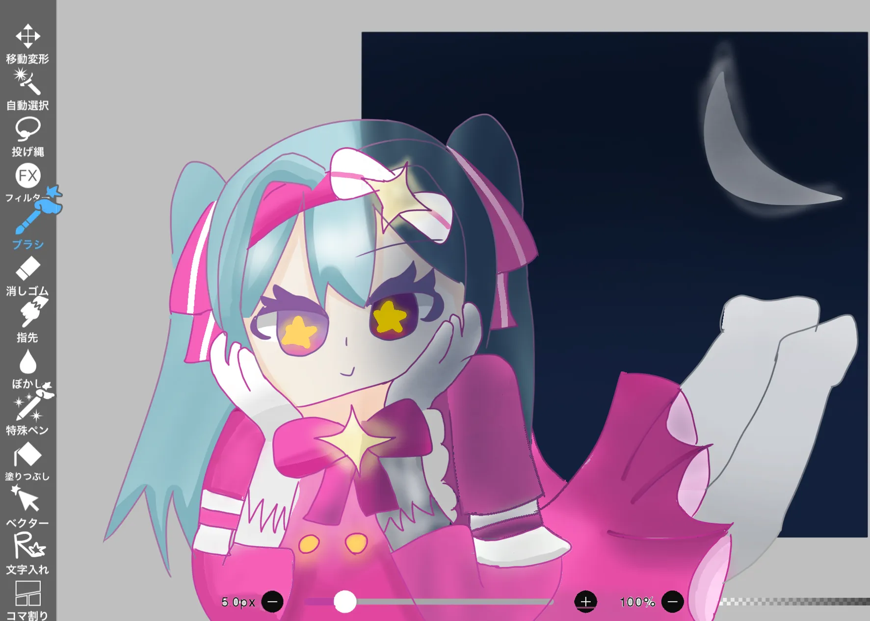 夜の背景に入ってる塗りはミクちゃんを暗くしてます