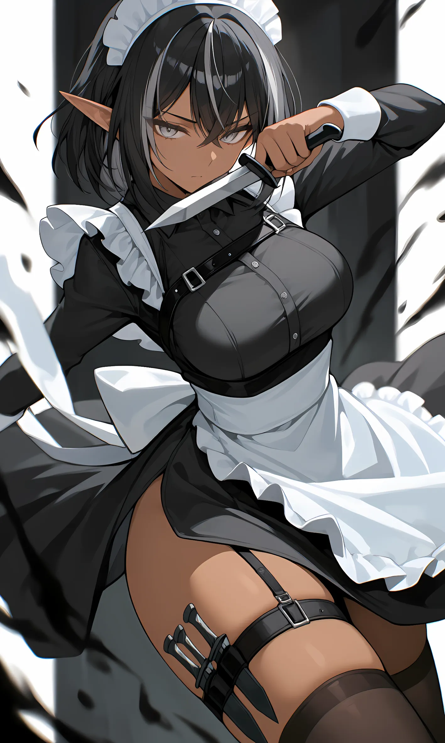 メイド服+ストッキングでの絶対領域とか刺さるやろと思ってたぜw4枚目は暗部メイドイメージだったから履いてないけど^ ^