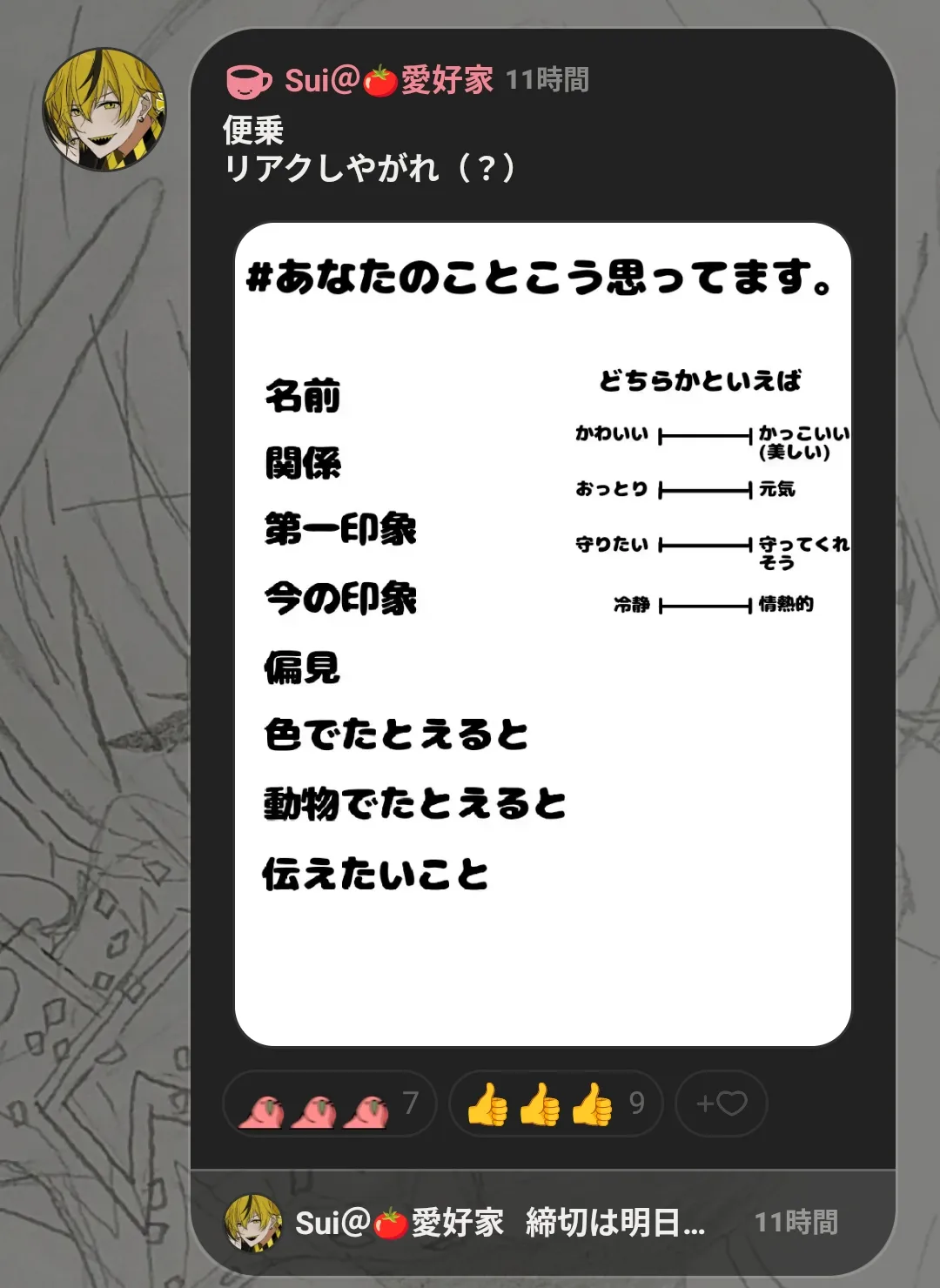 優しくて、皆のために色々してくれて、人思いで、素敵で、僕の光で、生きていてくれて嬉しくて、とても...素敵で尊敬している存在ですよ