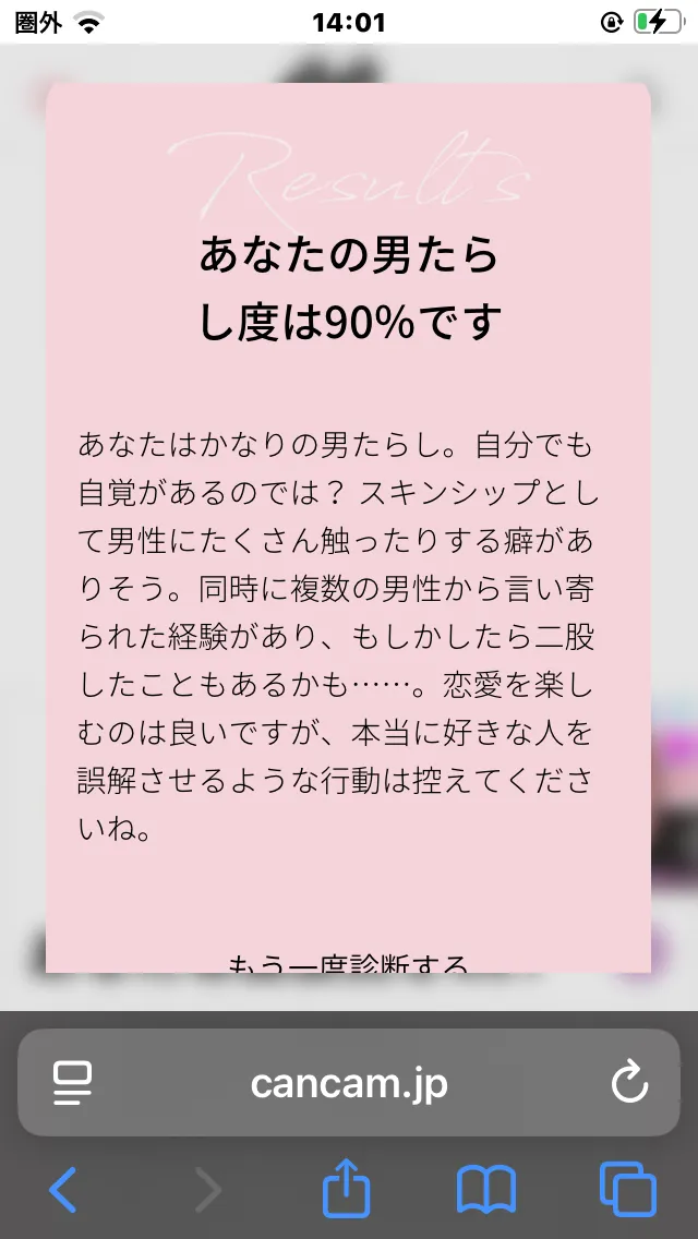 これも前撮ったものです。この診断のマックスは90%です。