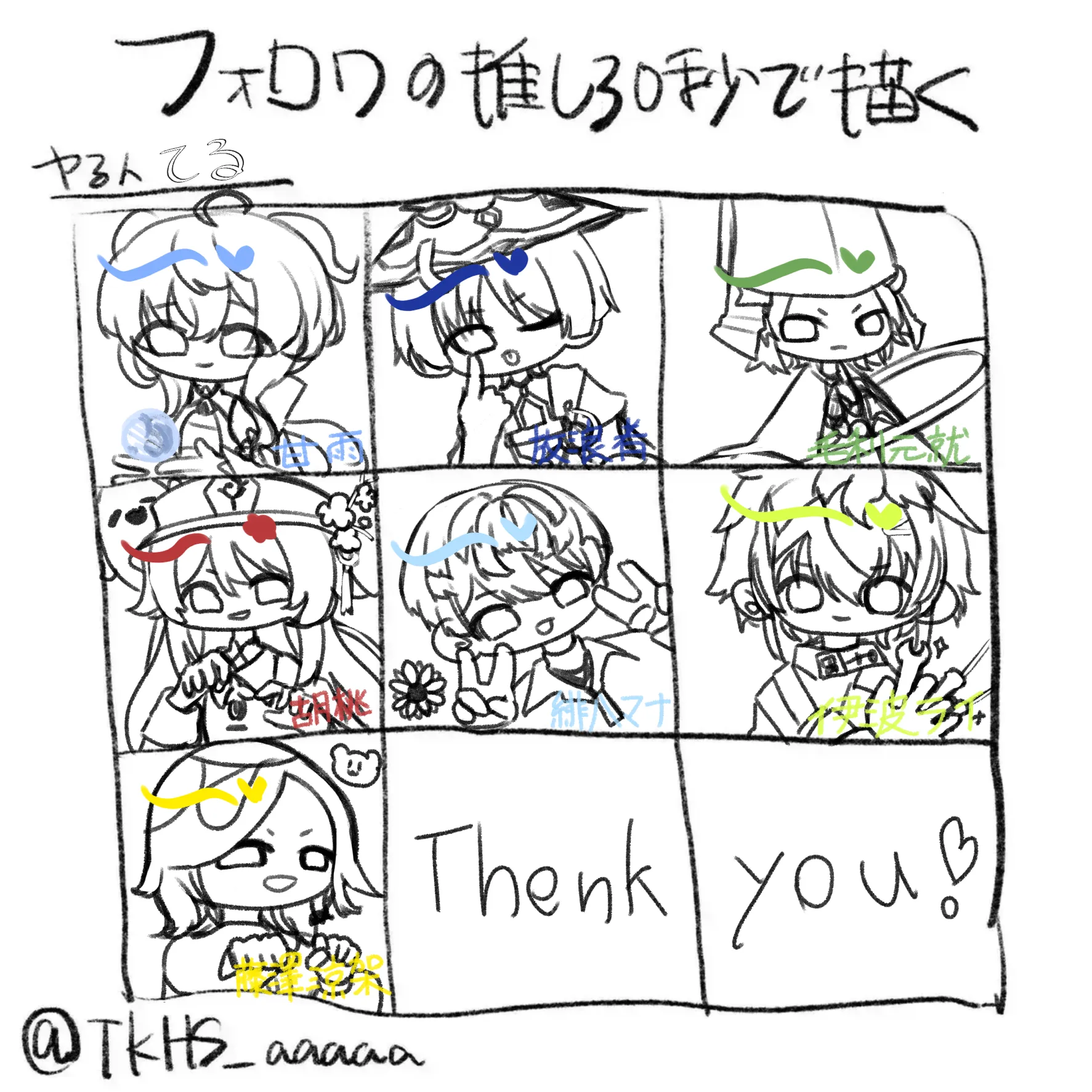 あの、ほぼ全員初描きです解釈違いあったらごめんそして さんきゅーのスペル違くてハゲる