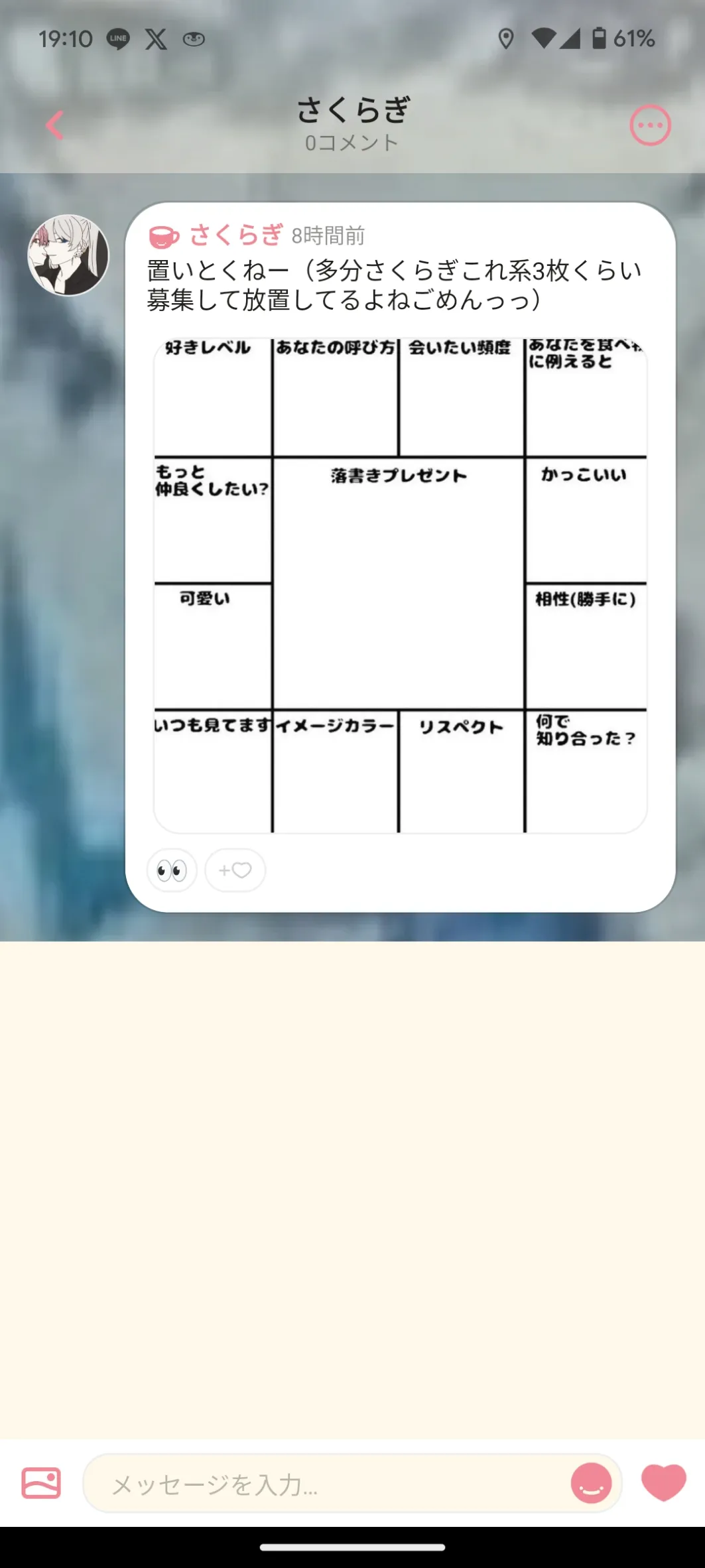 2025/3/27 01:14あたしの推し体調崩しすぎてて唯一体調不良で萌えられない、まじ身体大事にしてくれ…😭