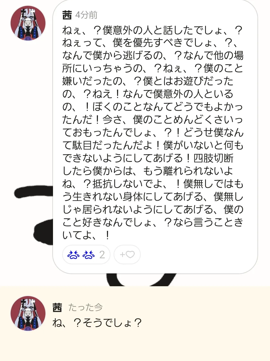 メンヘラ、ヤンデレ、愛重い方お話ししましょ〜