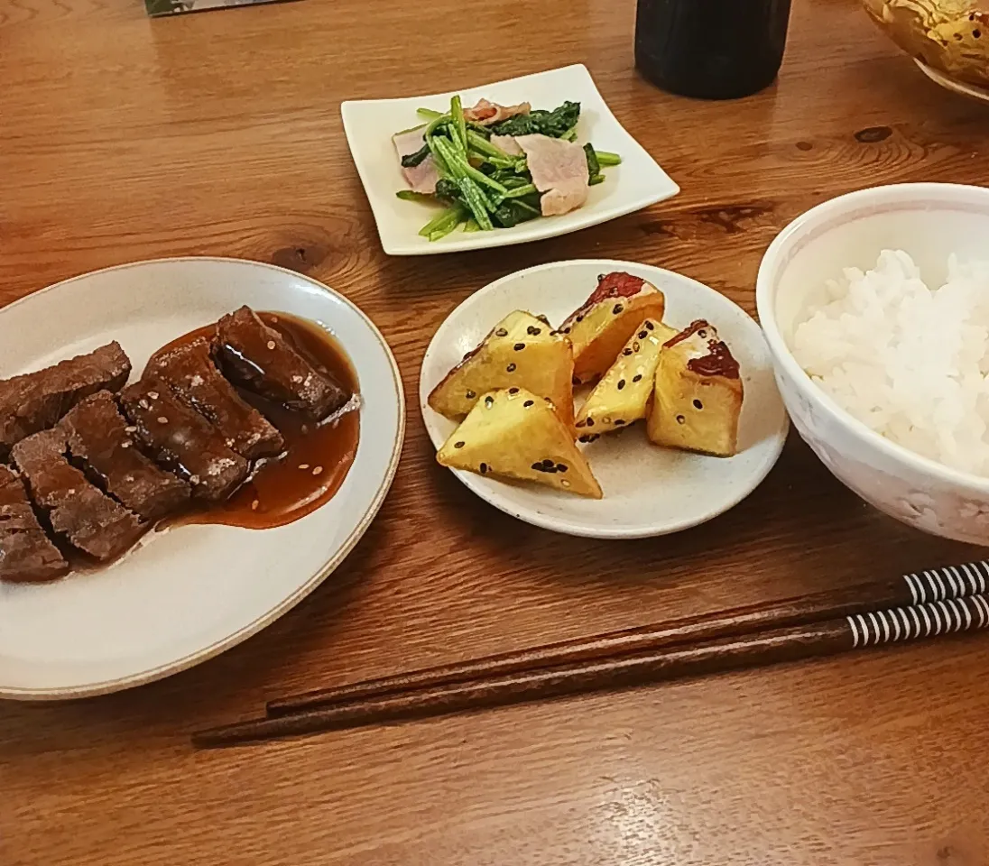 ステーキと大学いもがめっちゃおいしかった、!!😭♡