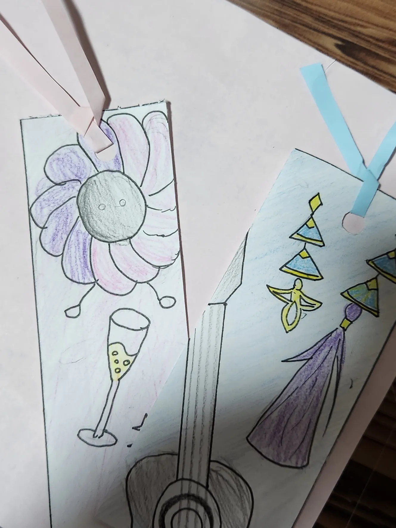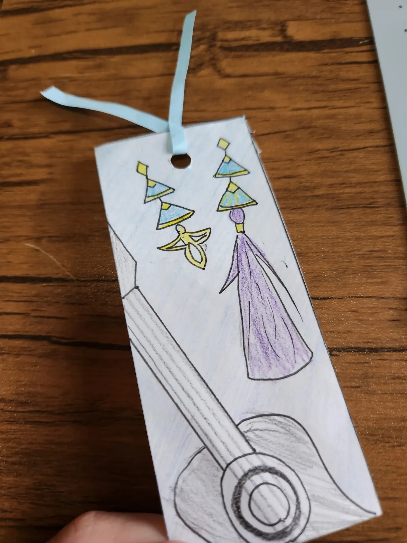 にじさんじの甲斐田さんモチーフのしおりです!あとリボンみたいなやつは折り紙です家に水色のリボンがなかったので代理の折り紙です。