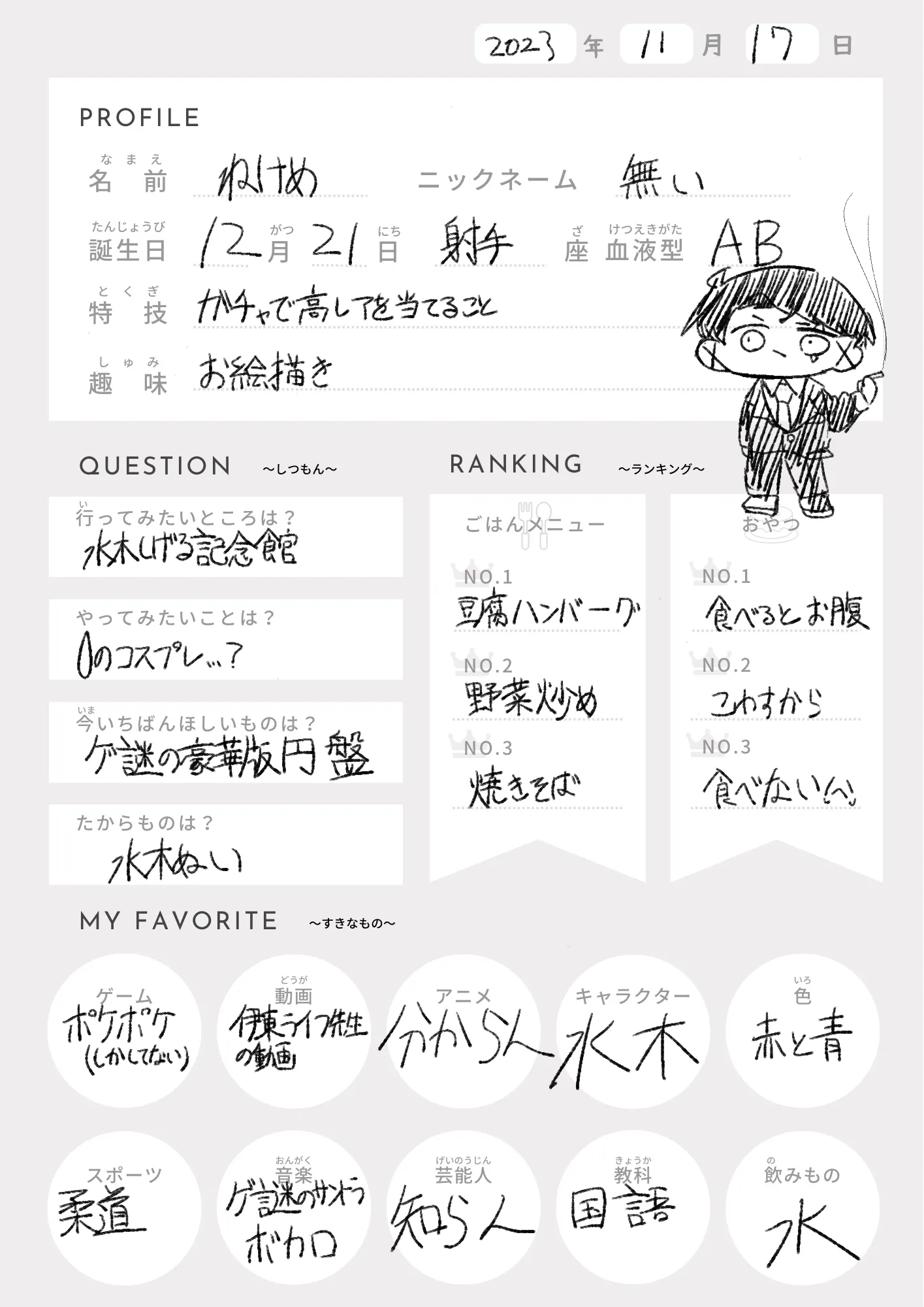 水木以外に好きなキャラとか?!