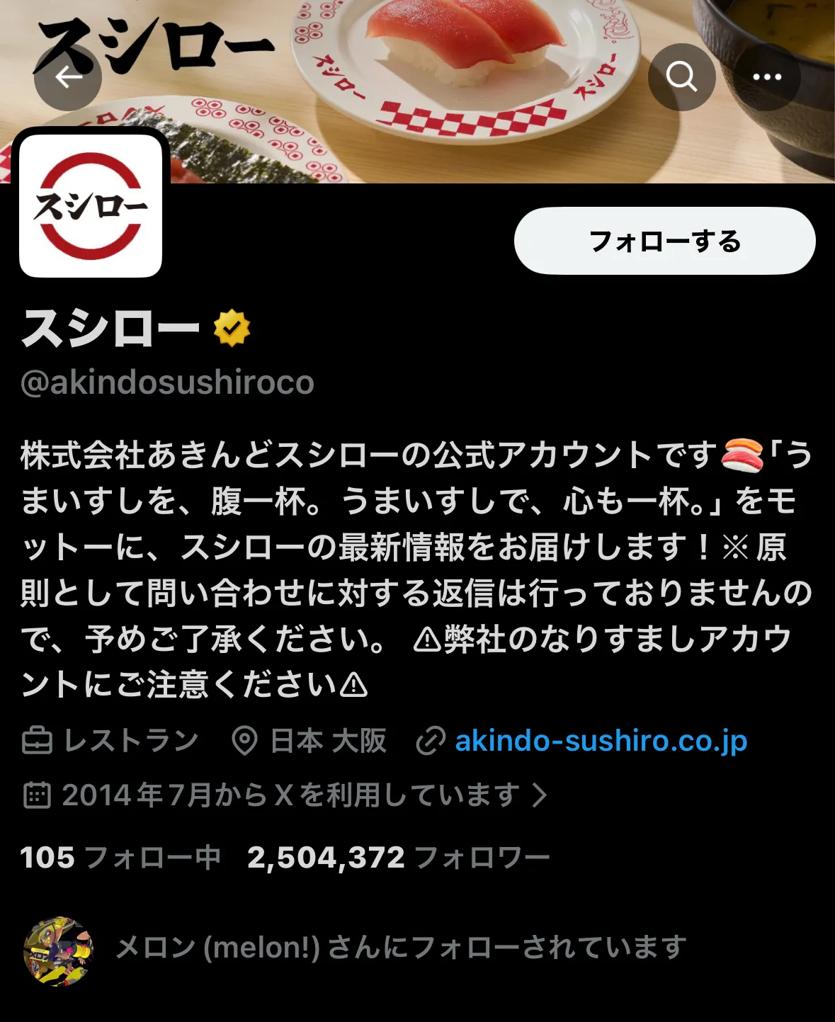 メロンくんスシローフォローしてたww