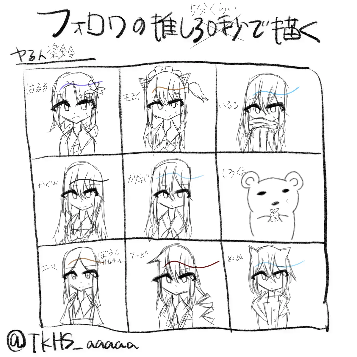 デジタルだと30秒で絵描けないけどとりあえずぼしゅ名前と画像送ってね(´・ω・`)