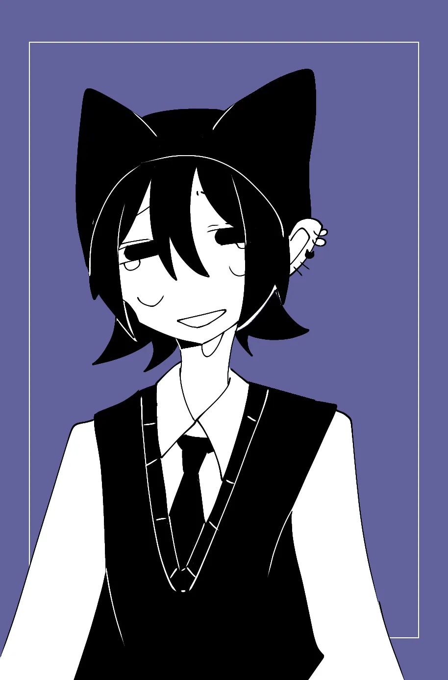 完成癖つめつめイラスト癖紹介ピン ピアスバチバチ 鎖骨舌ピ ギザ歯 隈 首跡