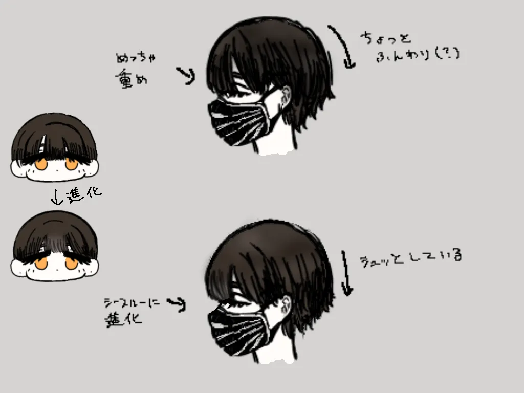 黒マスクは皮膚やからちゃんと描いとる(?)