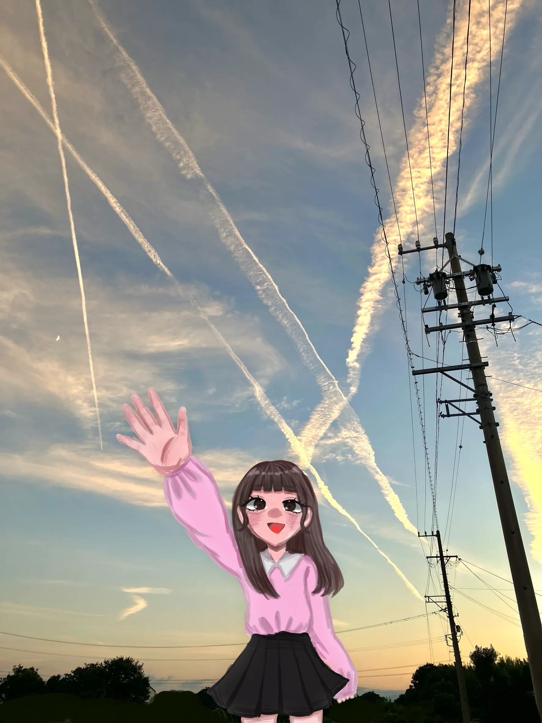 朝からめちゃ頑張った‼️女の子だけイラストだよ👍🏻背景は写真です🫣馴染んでるかな❓