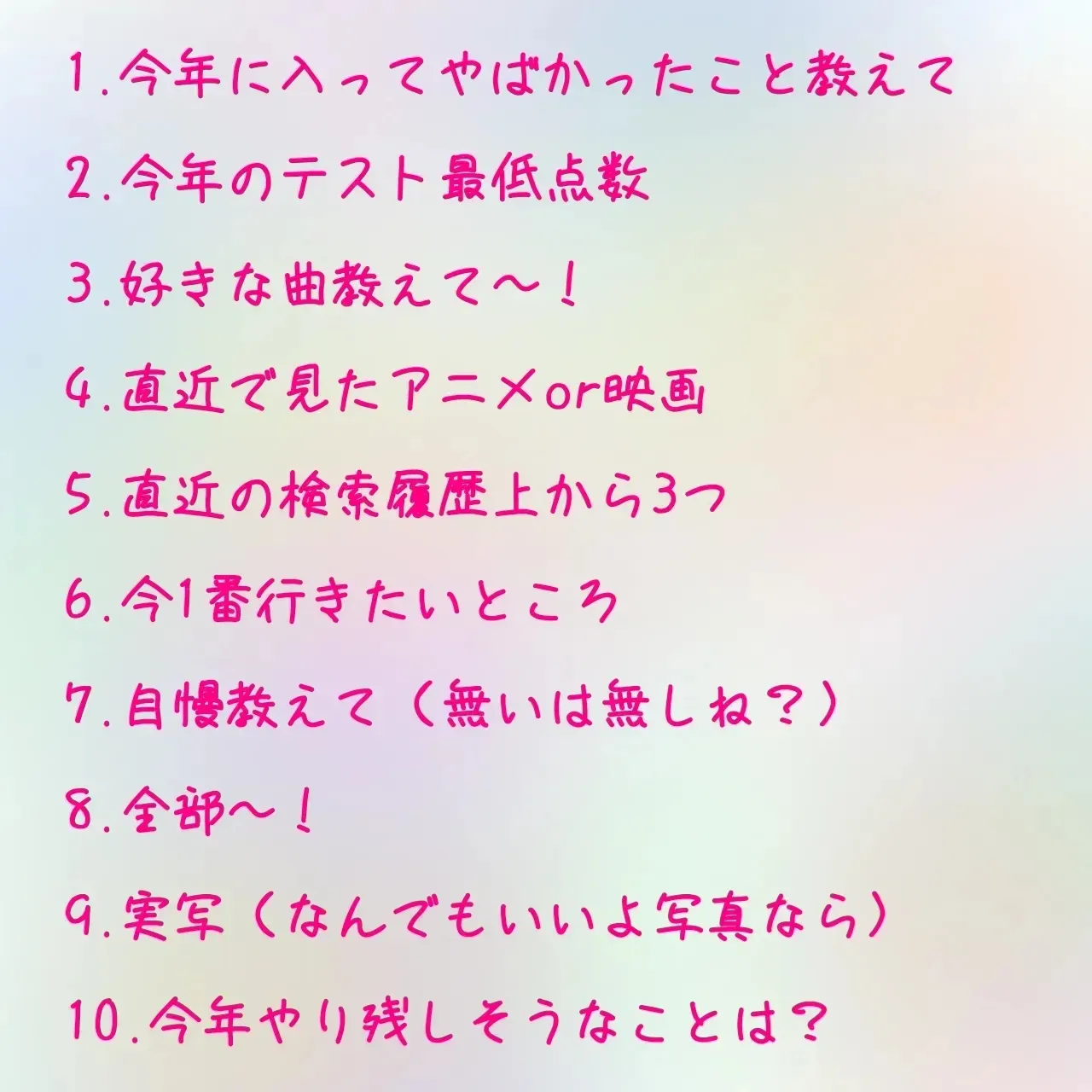 2025/10/7 22:04質問コーナー流行ってるのか、?俺もやりたくなってきたからここに質問ちょーだい