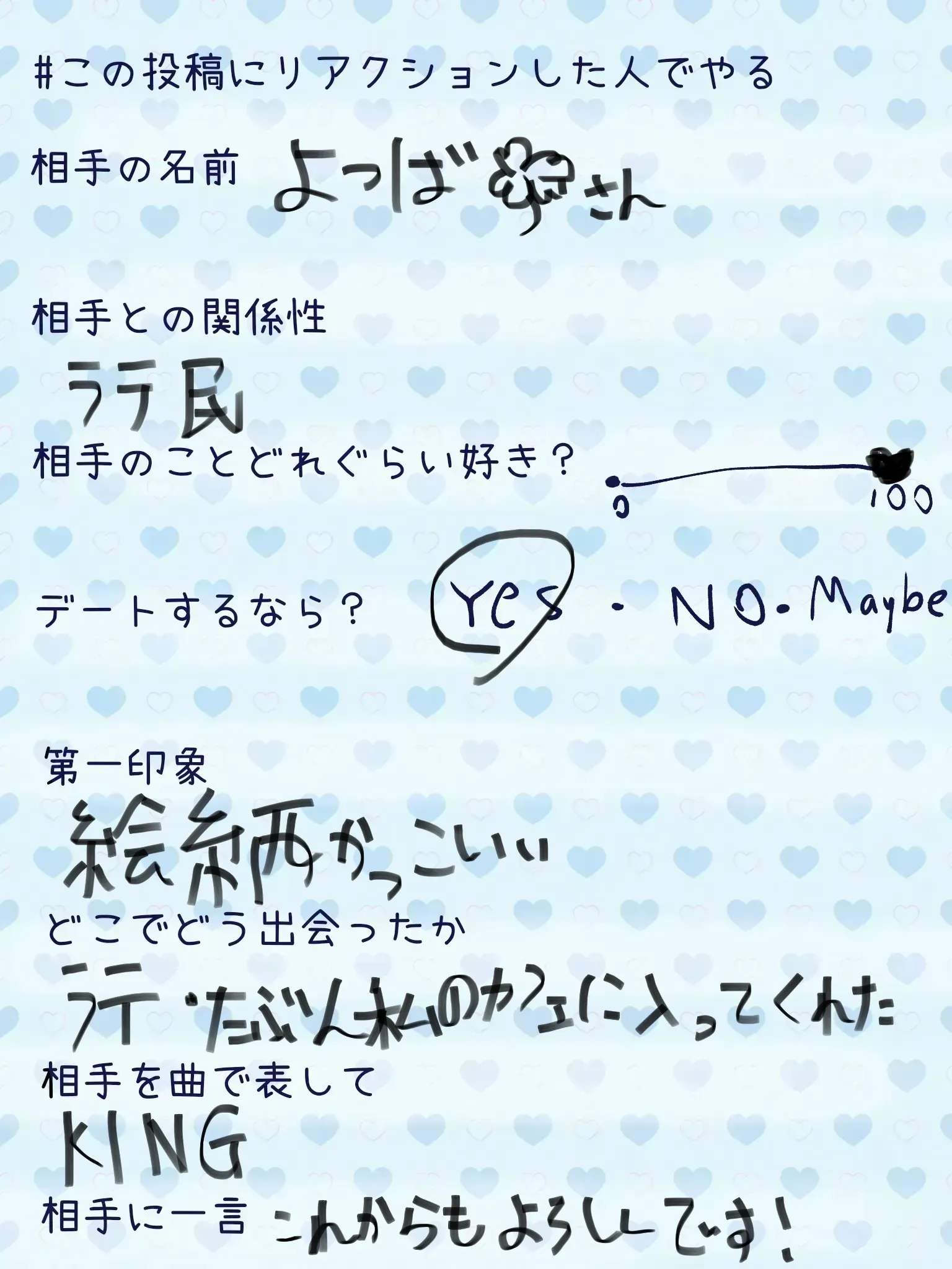 #この投稿にリアクションした人でやる