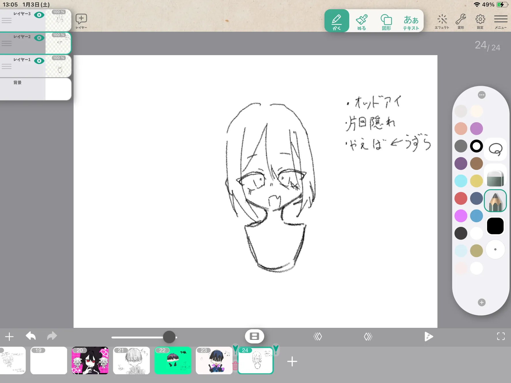 あ、オッドアイの色塗るの忘れてた💦塗ってくる