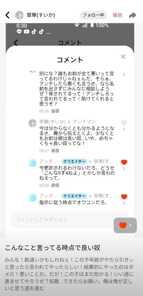 うち、フォロワー1000人越えやらぁ、お前くらいつだってうちのフォロワーに通報&ブロックしてもらうことだってできるねん