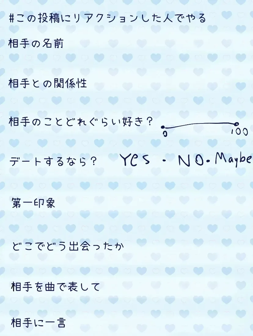 #この投稿にリアクションした人でやる😎🤘✨️(訳:居なかったら静かに消滅します)