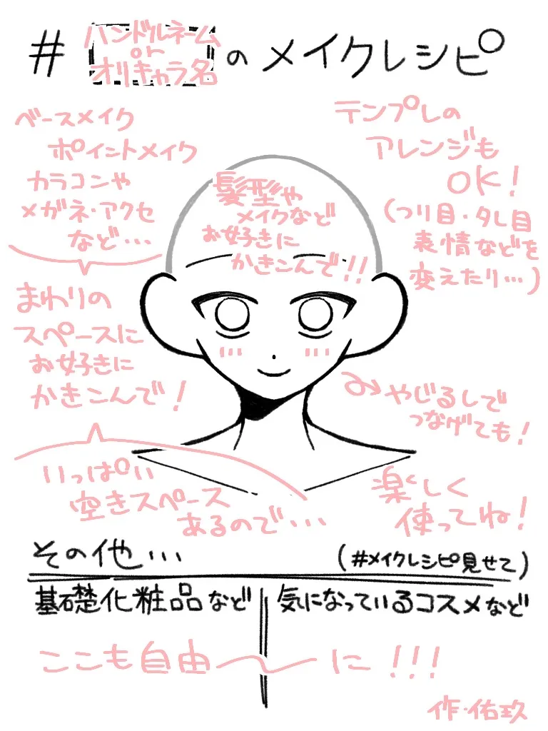 #メイクレシピ見せて⬆作ってみたので良ければ使ってください〰️!!!現実の自分のメイクでも、オリキャラor代理さんのメイクでも🆗❕是非みんなの #メイクレシピ見せて 〜!⬇保存もご自由に!