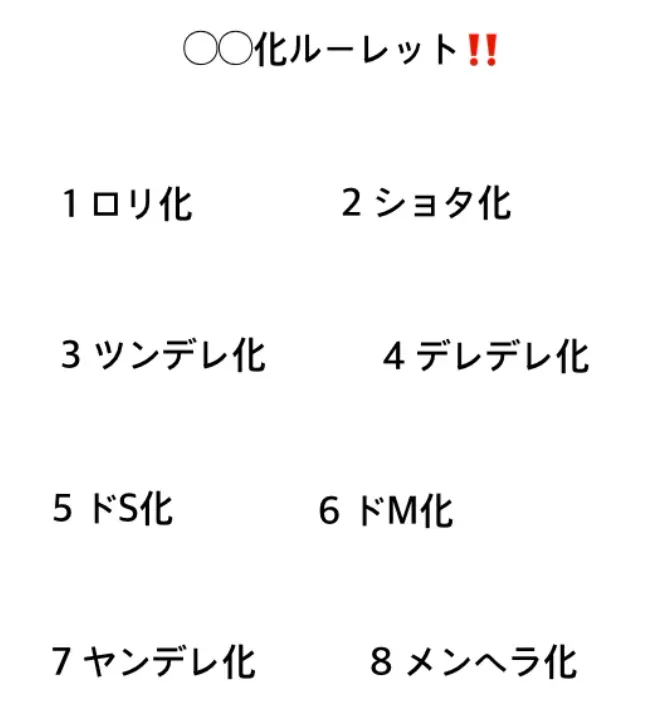 #ルーレット一人称ルーレット1僕2オレ3おで4私5あたし6僕(やつがれ)