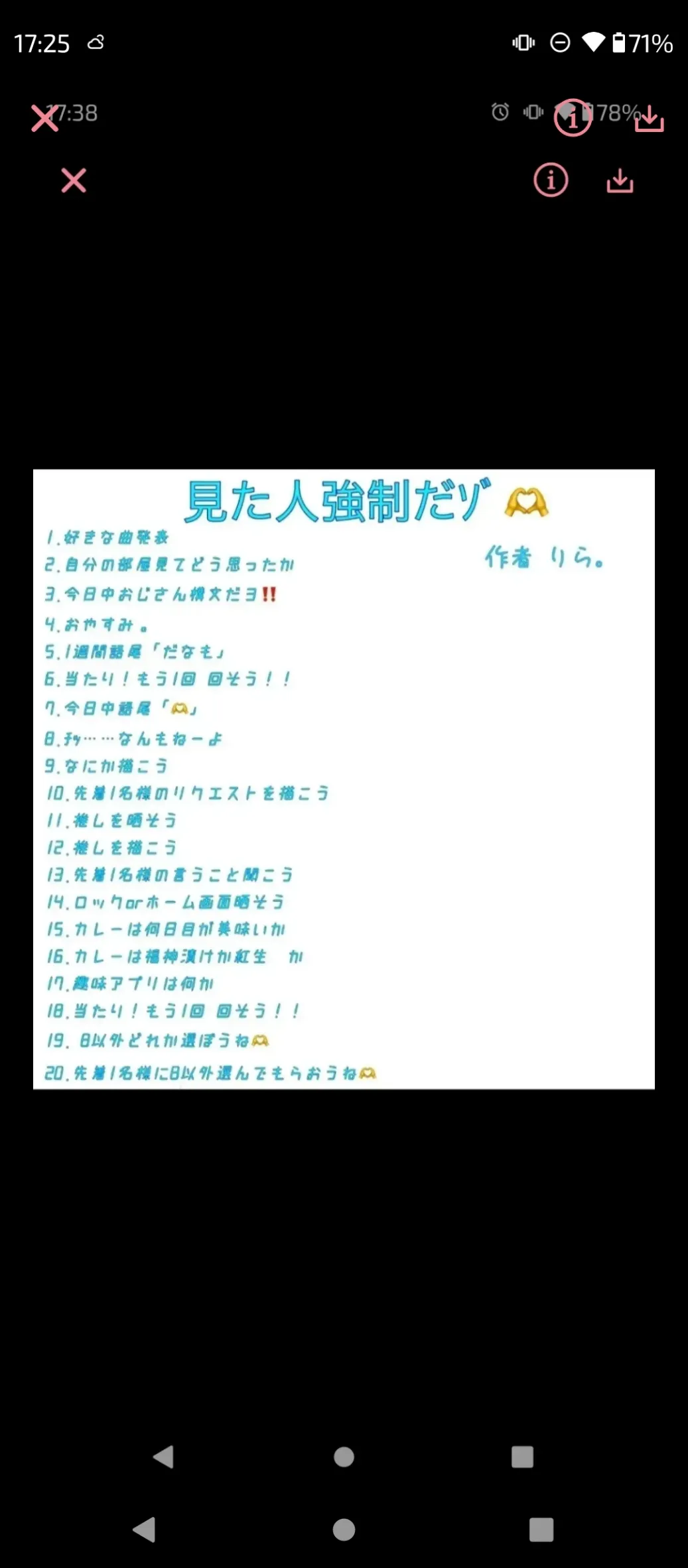 #ルーレット1,顔隠して身を公開2,顔面大公開3,えっちなえをかく(反則禁止投稿必ず)4,語尾に☆☆☆か(((殴5,語尾に❁❀ですねそれは!6,アクシズ食う(完食し終わったら再ルーレット)7,普通に絵8,名前苗字と本名にする