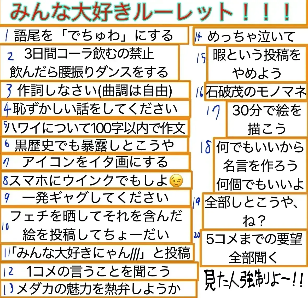 #ルーレット家帰ったら書く