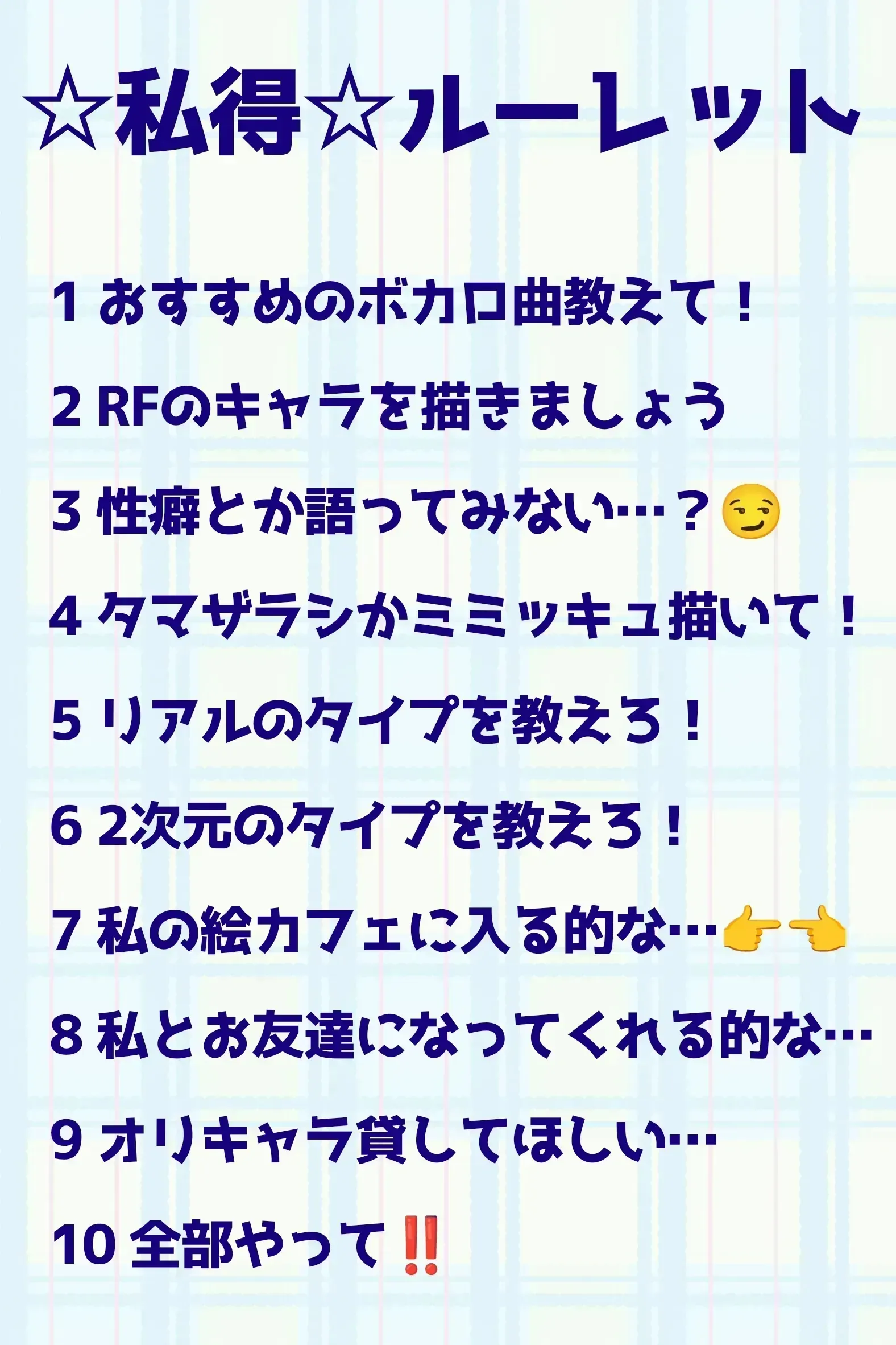 #ルーレットえー…っとちょっとまってね選んでくるから(?)この投稿のコメントで載せとくね