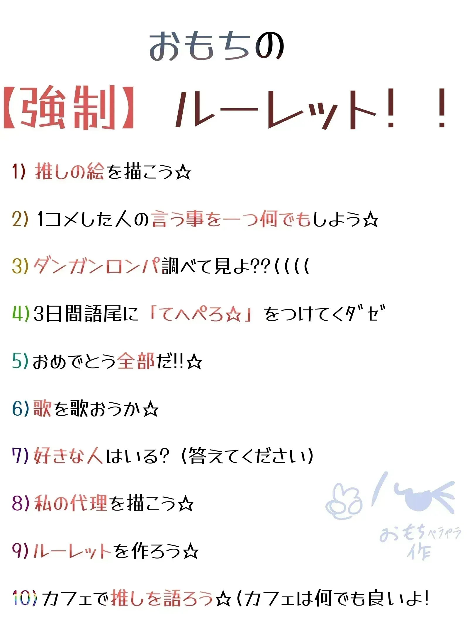 え〜っと今出来るやつだけやるわ