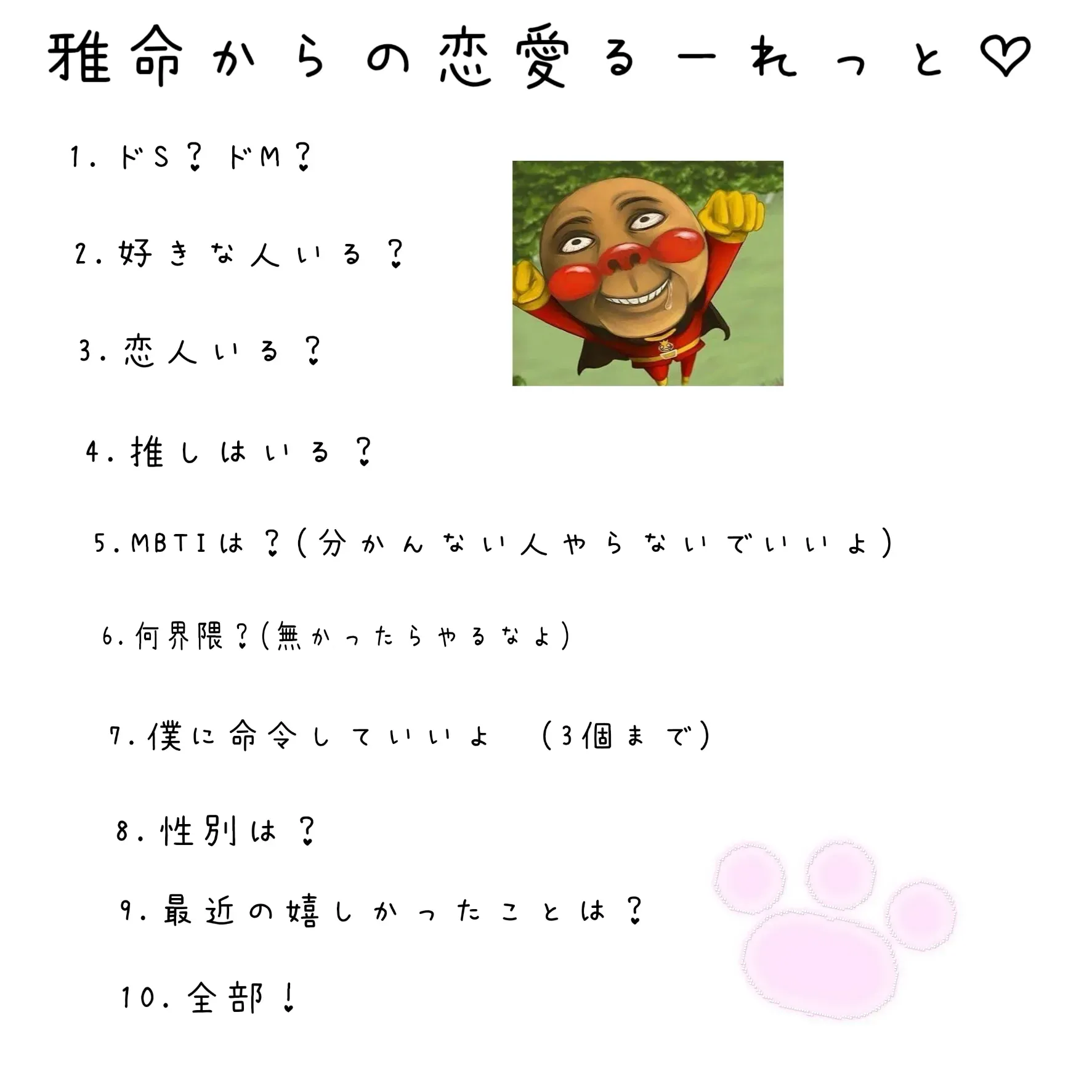 #ルーレット1 オリキャラバトル新キャラつくる2 フォーキッズ更新3 オリキャラバトル新垢作る4 フォーキッズプロフィール更新5 オリキャラバトル新キャラを複数作る6 何もしない