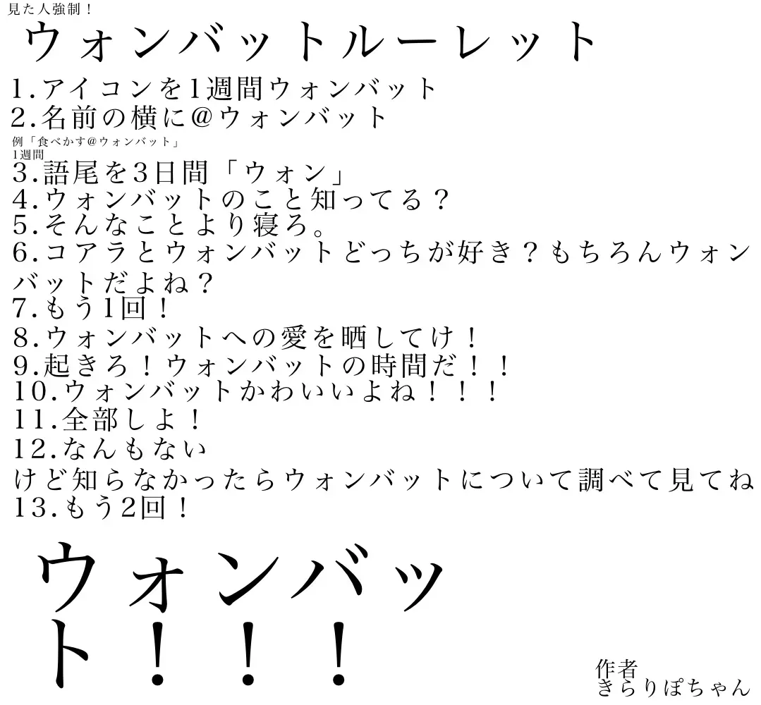 #ルーレットウォンバットって何?