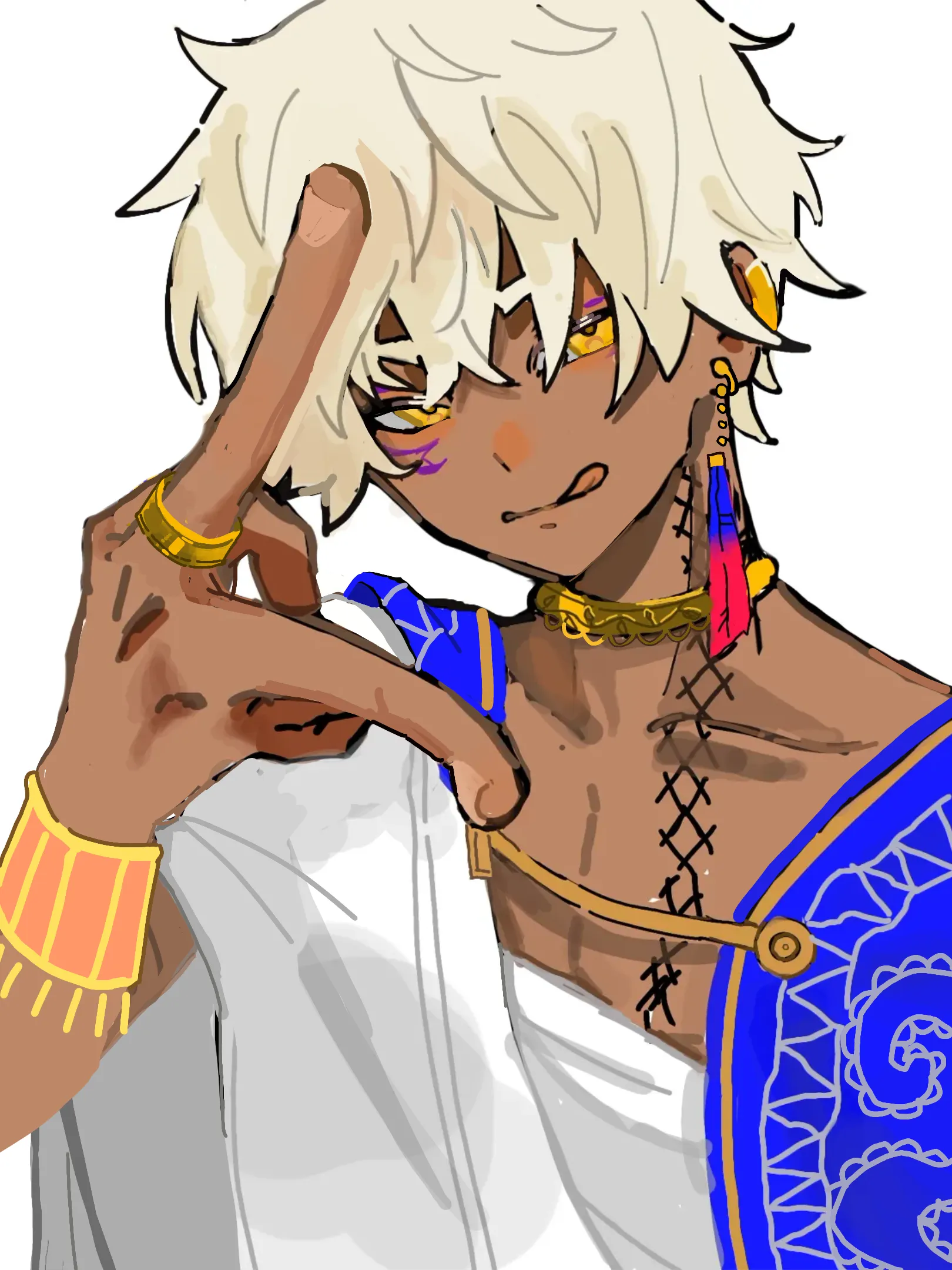 目を細めて笑ってるの可愛い、そして手も服もうますぎじゃないですか?圧倒的画力を見せつけられている。